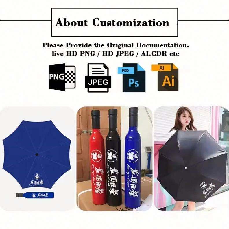 ร่มพับ 3 ตอน แบบกำหนดเองจากโรงงาน รับผลิตแบบ OEM ODM สำหรับโฆษณา ใช้ได้ทั้งวันฝนตกและวันแดด ร่มพับรูปขวดไวน์ สำหรับของขวัญทางธุรกิจและการเดินทาง