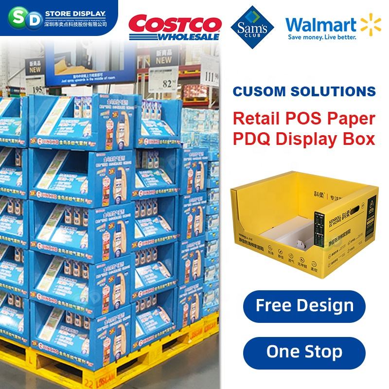 กล่องแสดงสินค้าแบบตั้งพื้นสำหรับงานโปรโมชั่น ทำจากกระดาษแข็งรีไซเคิล เป็นมิตรกับสิ่งแวดล้อม แบบกำหนดเองสำหรับโรงงาน สำหรับวางบนพาเลท สำหรับร้านค้าปลีก