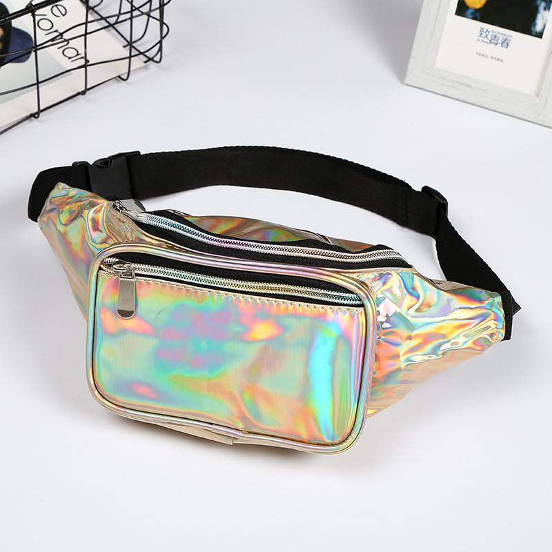 กระเป๋าคาดเอว PVC แบบกำหนดเองจากโรงงาน สีเลเซอร์วิเศษ แฟชั่นอเนกประสงค์ กันน้ำ สำหรับทุกเพศ กระเป๋าคาดเอวโฮโลแกรม