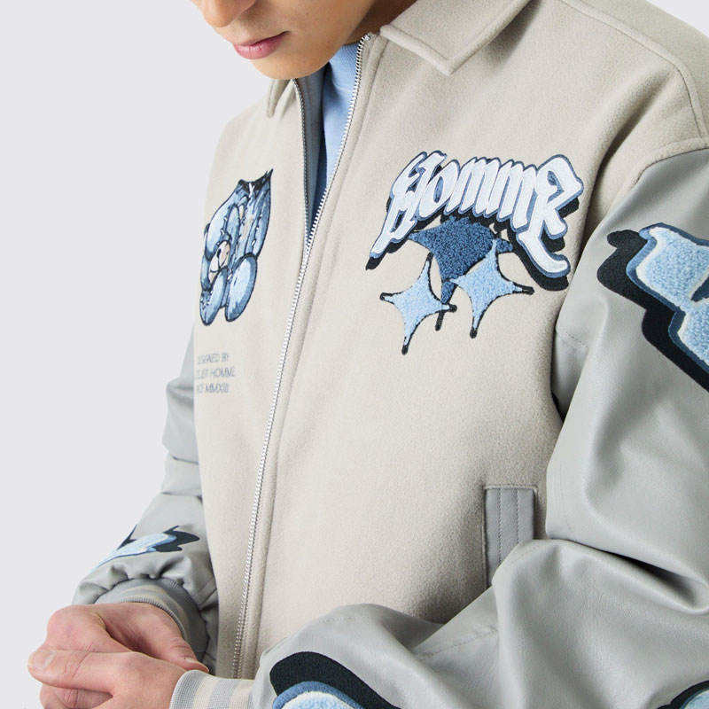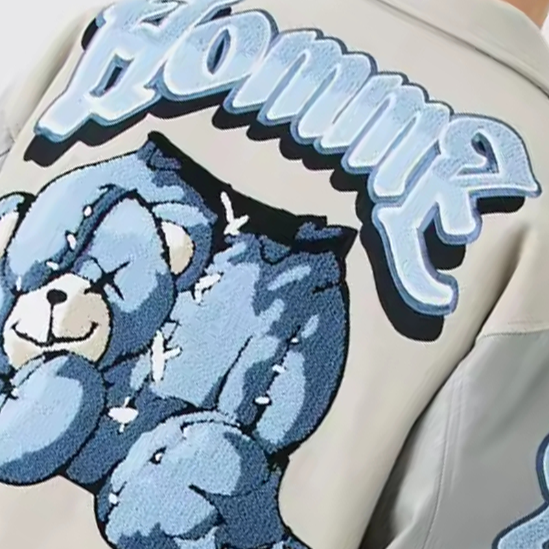 เสื้อแจ็คเก็ตเบสบอลแบบมีแพทช์ปักลาย TEDDY สไตล์ลำลองแนวสตรีทแฟชั่นสำหรับผู้ชาย รับผลิตตามแบบที่ต้องการ