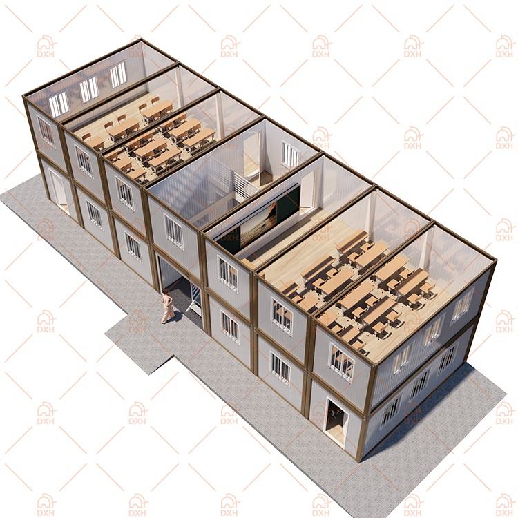 บ้านสำเร็จรูปแบบกำหนดเองจากโรงงาน บ้านคอนเทนเนอร์เหล็กแบบแผงแซนวิชสองชั้น สำหรับที่พักนักเรียน ห้องเรียนโรงเรียน