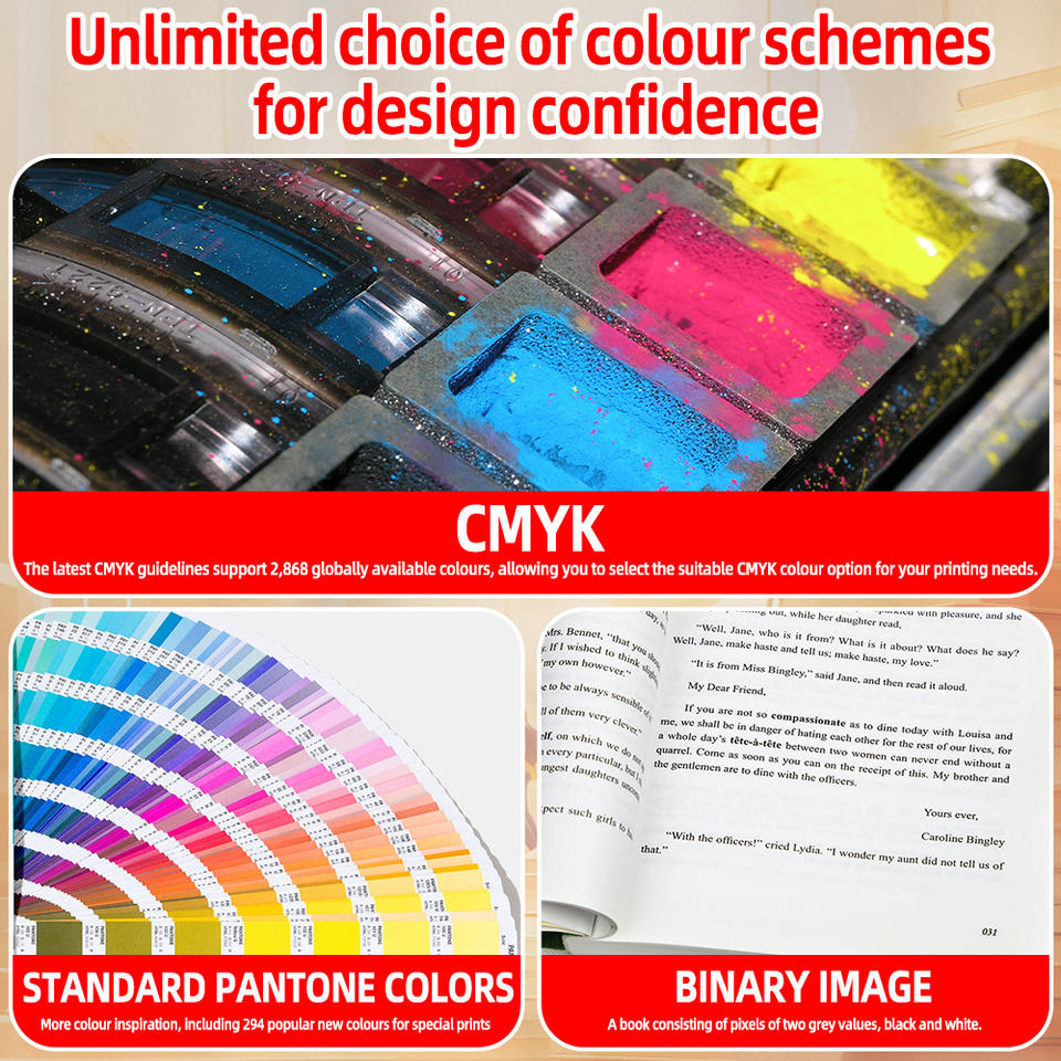 สีที่ใช้พิมพ์:การพิมพ์ CMYK/Pantone/สีเดียว