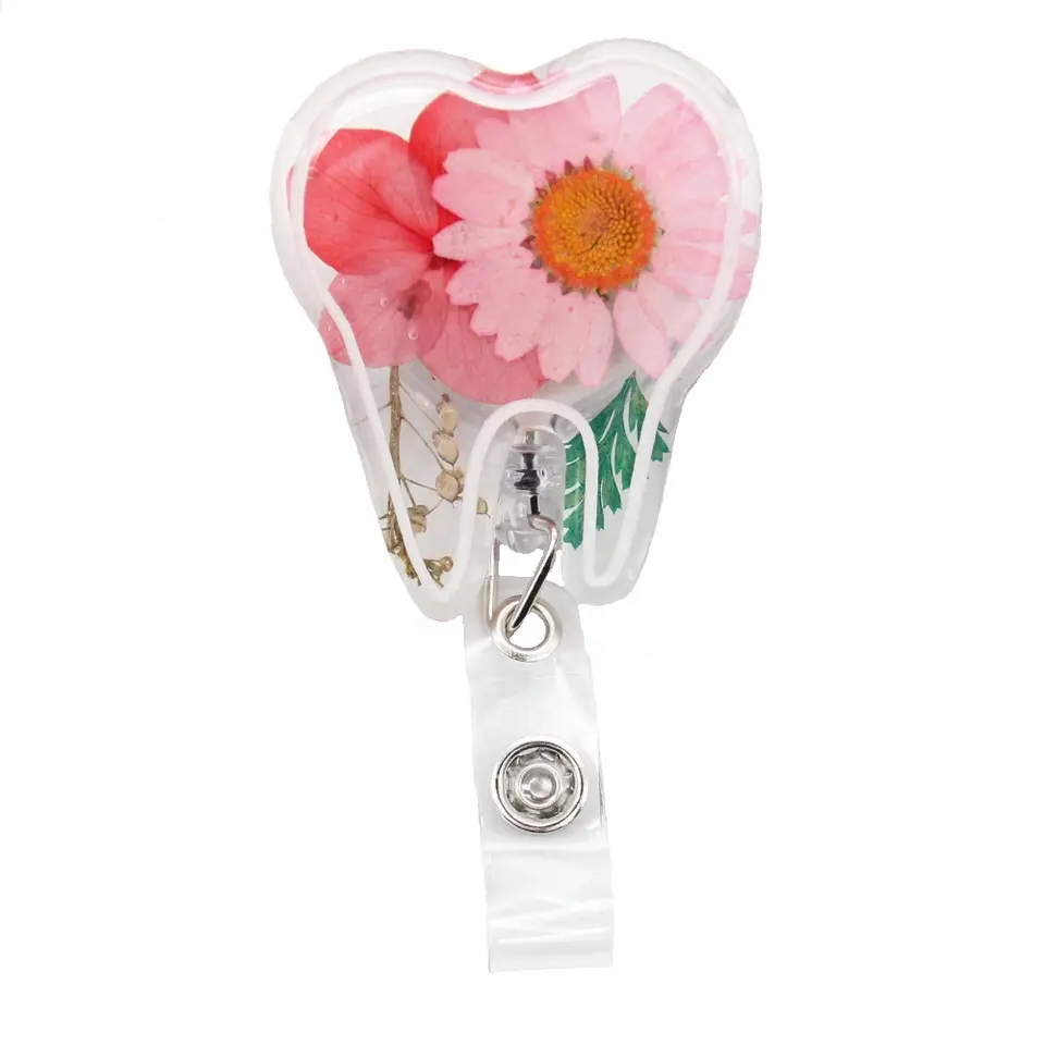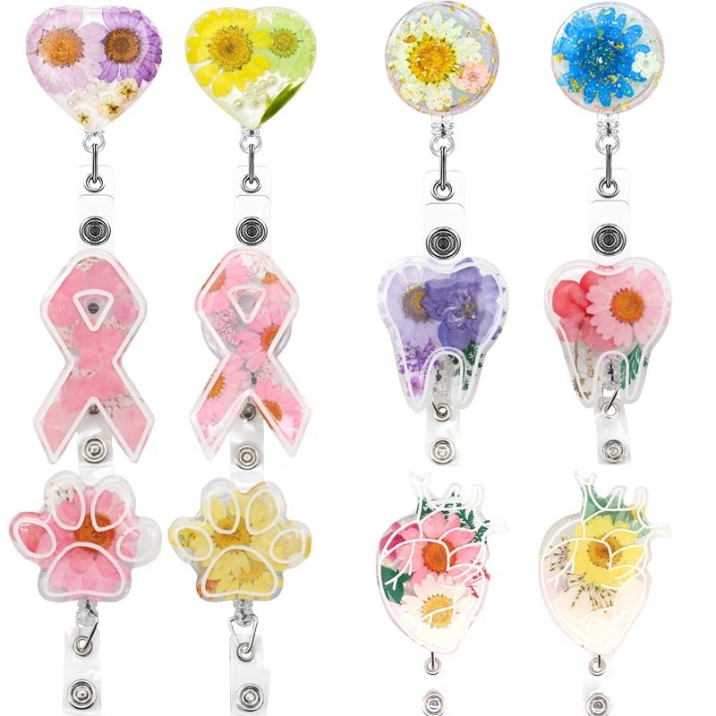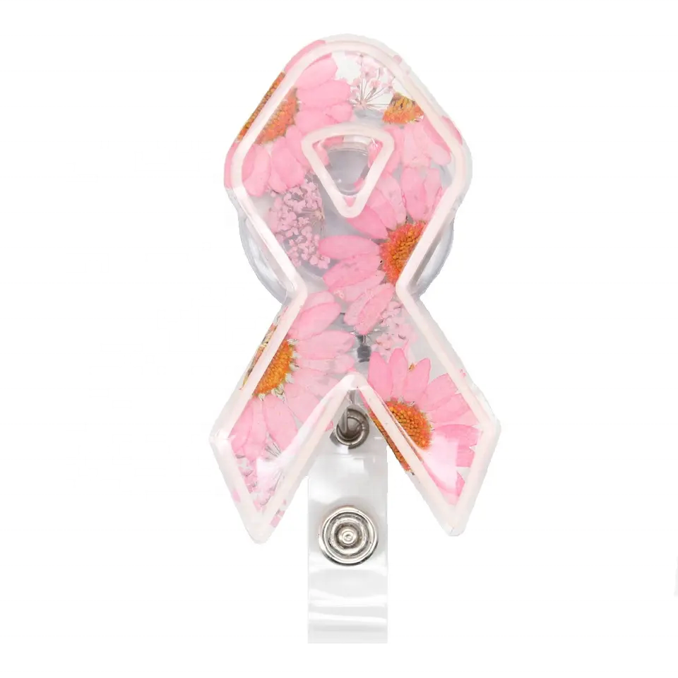 ที่ใส่ป้ายเรซินแบบพับเก็บได้จากโรงงานริบบิ้นรับรู้เต้านมรูปหัวใจทางการแพทย์สำหรับม้วนป้ายดอกไม้แห้ง