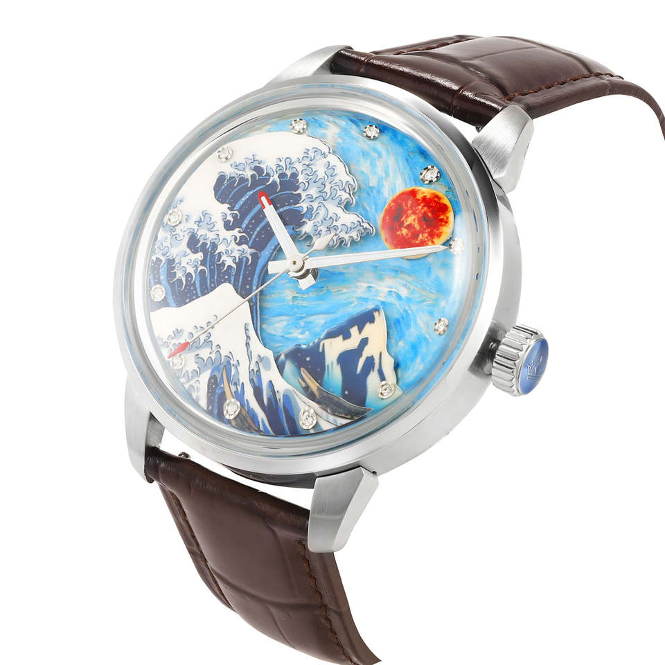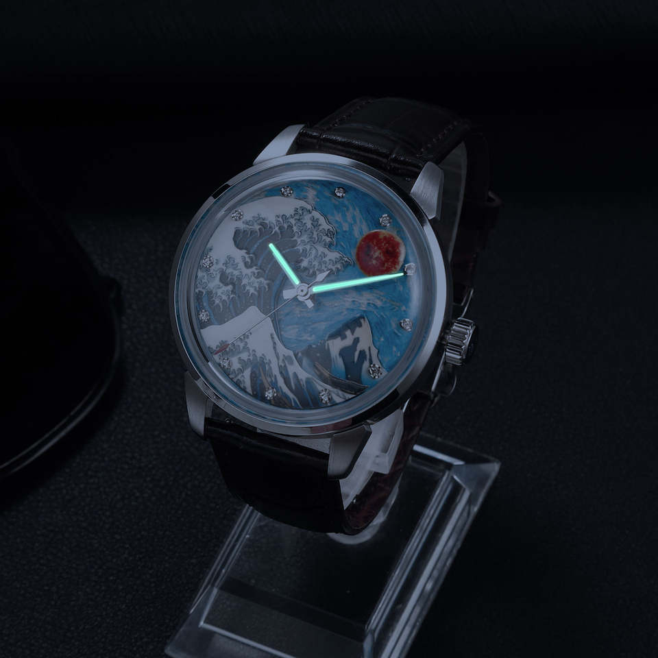 สายนาฬิกาหนังลายภาพวิวแซฟไฟร์สั่งทำจากโรงงาน นาฬิกาจักรกลอัตโนมัติสำหรับผู้ชาย