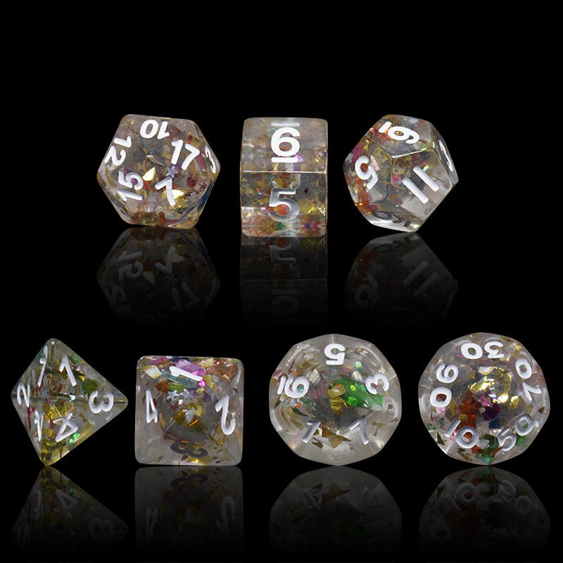 ชุดลูกเต๋าเรซิ่นสีม่วงโปร่งแสงทรงแปดเหลี่ยม ผลิตตามสั่งจากโรงงาน ทนทาน พร้อมฟอยล์สีสันสดใสสำหรับเกมกระดาน