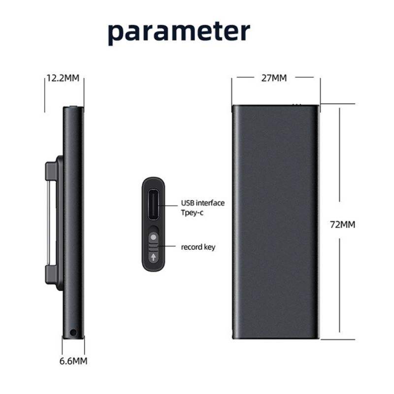 เครื่องบันทึกเสียงแบบพกพาขนาดเล็ก รุ่นสั่งทำพิเศษจากโรงงาน ชาร์จผ่าน USB บันทึกเสียงด้วยปุ่มเดียว เหมาะสำหรับการประชุม ชั้นเรียน อุปกรณ์บันทึกเสียงแบบเงียบ