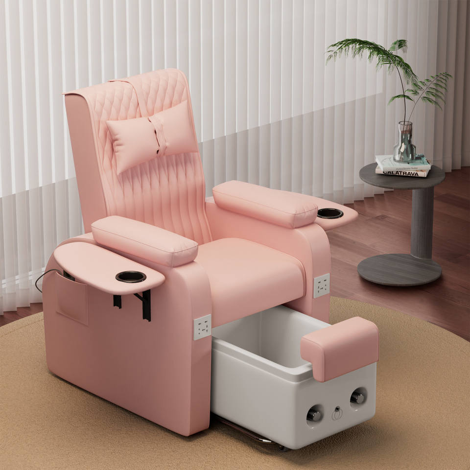 เก้าอี้นวดเท้าสปาทำเล็บมือ-เล็บเท้าไฟฟ้าสำหรับร้านเสริมสวย ดีไซน์ทันสมัย หรูหรา สีชมพู ผลิตตามสั่งจากโรงงาน