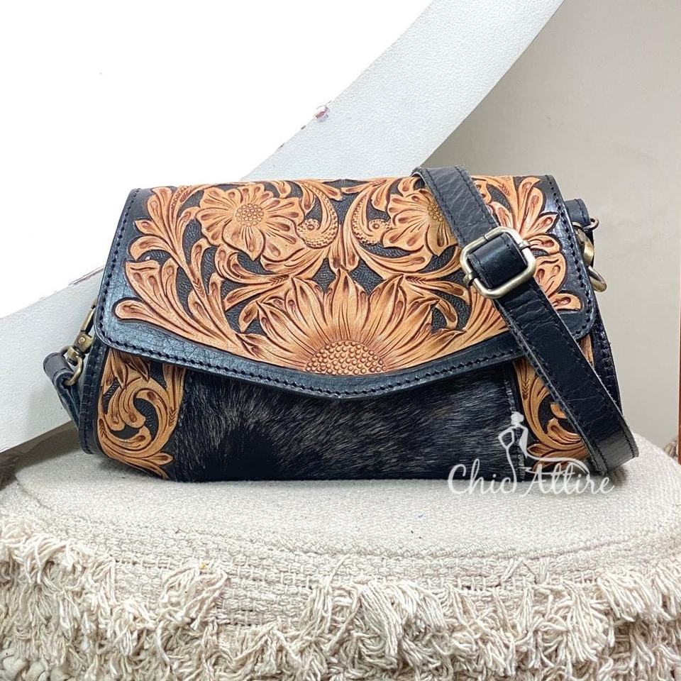 Product name:Hand Tooled Cowhide Fashionable Crossbody Bag