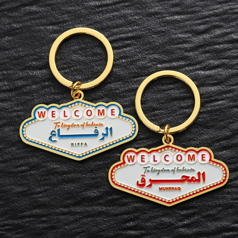 พวงกุญแจโลหะเคลือบทองคำ ของที่ระลึกการเดินทางแบบกำหนดเองจากโรงงาน คุณภาพสูง ผลิตจากโลหะผสมสังกะสี พร้อมกล่องบรรจุภัณฑ์
