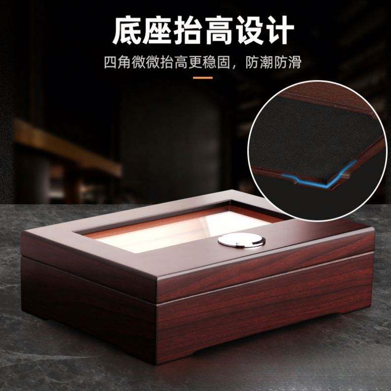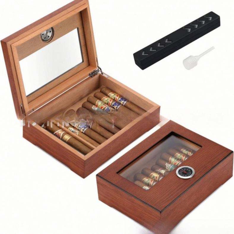 กล่องไม้ใส่ซิการ์แบบวินเทจพร้อมกระจกเครื่องวัดความชื้นกล่องซิการ์ตู้ไม้หรูหราออกแบบได้ตามต้องการ
