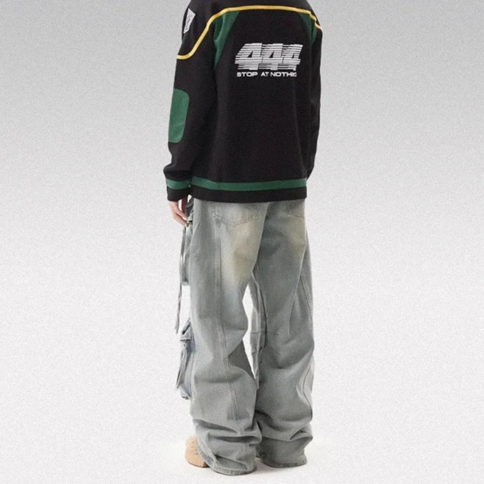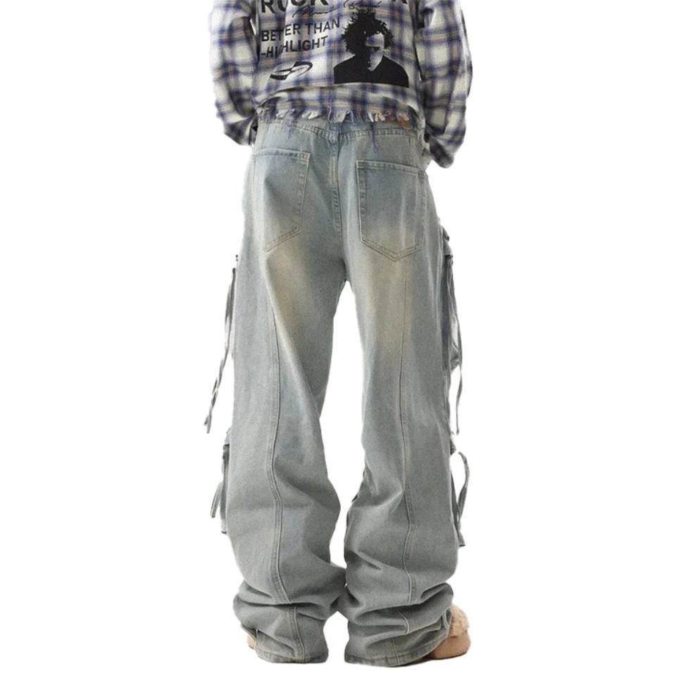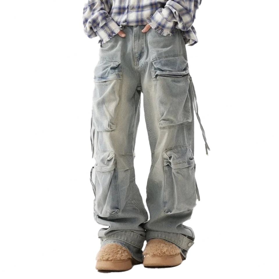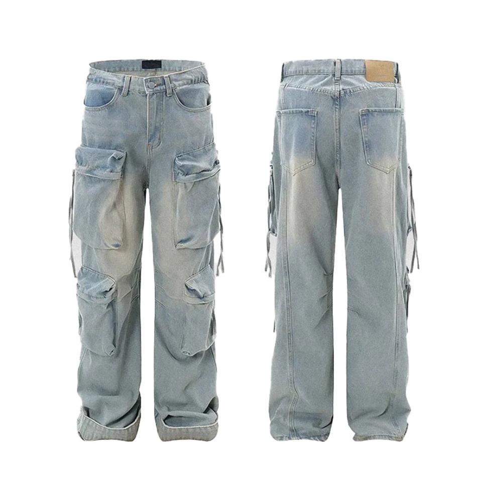 กางเกงยีนส์ผู้ชายไซส์ใหญ่สีฟ้าอ่อนทรงขากว้างแบบซ้อนทับสั่งทำขายส่งจากโรงงาน