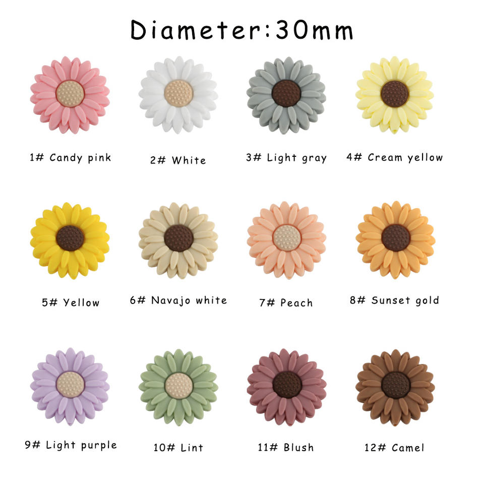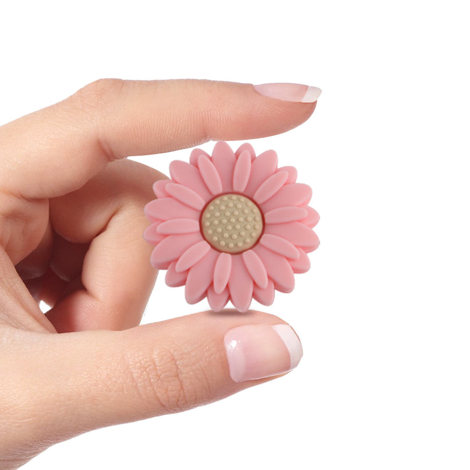 สร้อยข้อมือสร้อยคอซิลิโคนสำหรับเด็กกัดของเล่นเด็กลูกปัดซิลิโคนดอกทานตะวันโฟกัสลายจุดสำหรับทำเครื่องประดับปากกา