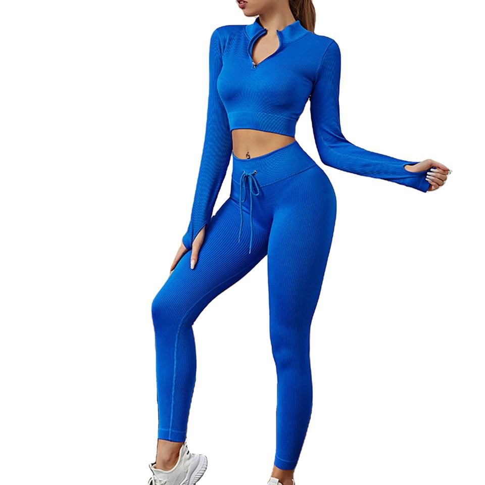 Factory Custom Wholesale Women Yoga Set Tights Crop Top 2-Piece Seamless Sleeveless Solid Front Eco-Friendly Four-Way Stretch