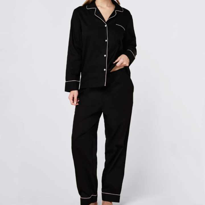 ชุดนอนผ้าซาตินคอตตอนสำหรับผู้หญิง แบบสวมใส่สบาย ระบายอากาศได้ดี ดีไซน์ลำลอง ผลิตตามแบบ ODM พร้อมขอบตัดสีตัดกัน
