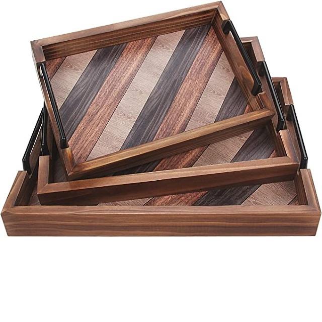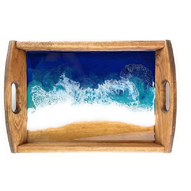 Factory Custom Wood Food Serving Tray Wedding Gift Ornament Ocean Theme Serving Tray Juice Serving Platter For Coffee tea