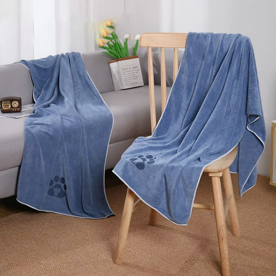 ผ้าขนหนูไมโครไฟเบอร์สำหรับสุนัขแห้งเร็วดูดซับได้ดีฉลากโลโก้ตามสั่ง