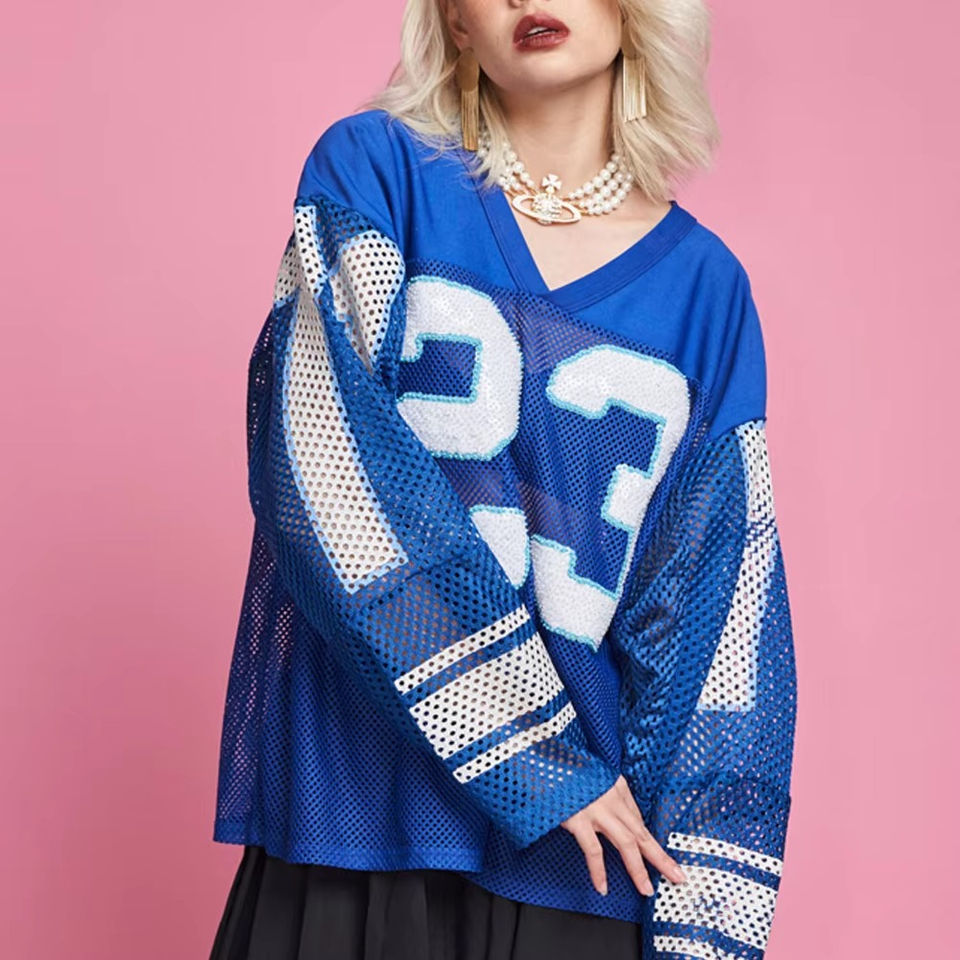 เสื้ออเมริกันฟุตบอลแบบสั่งทำจากโรงงาน ระบายอากาศได้ดี เสื้อเจอร์ซีย์ตาข่ายแบบยูนิเซ็กซ์ คอวี สายปรับได้ ป้องกันรังสียูวี