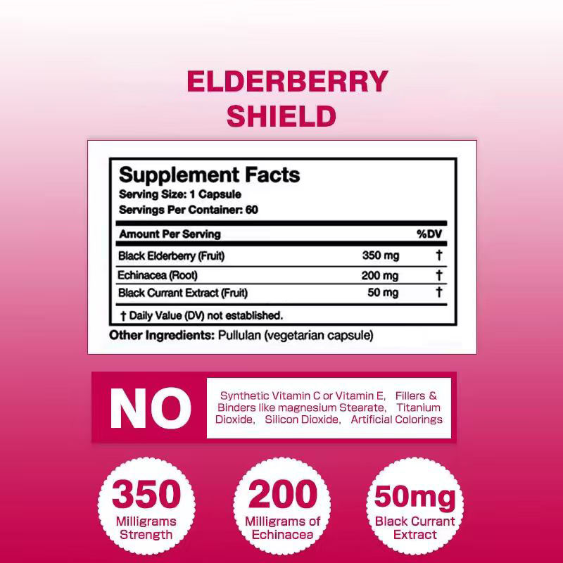 แคปซูลเอลเดอร์เบอร์รี่ปรับแต่งสูตรเฉพาะจากโรงงาน วิตามินซีธรรมชาติจากเอ็กไคนาเซีย เสริมสร้างระบบภูมิคุ้มกัน อุดมไปด้วยสารต้านอนุมูลอิสระ สำหรับผู้ใหญ่