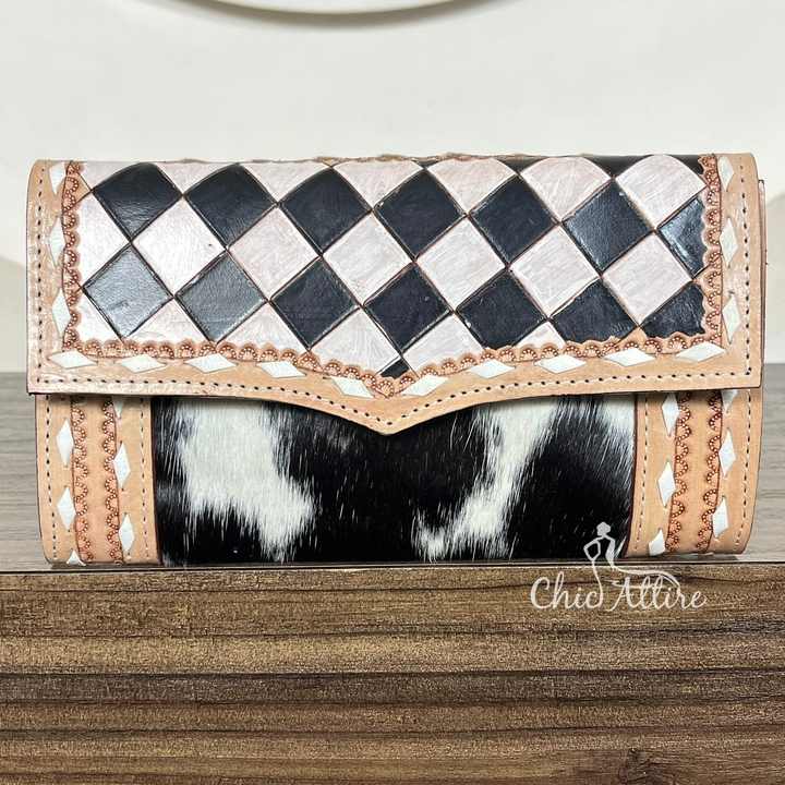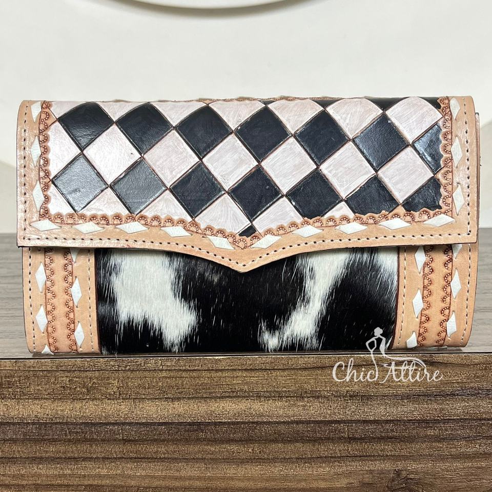 กระเป๋าสตางค์หนังลายตารางหมากรุกมือ