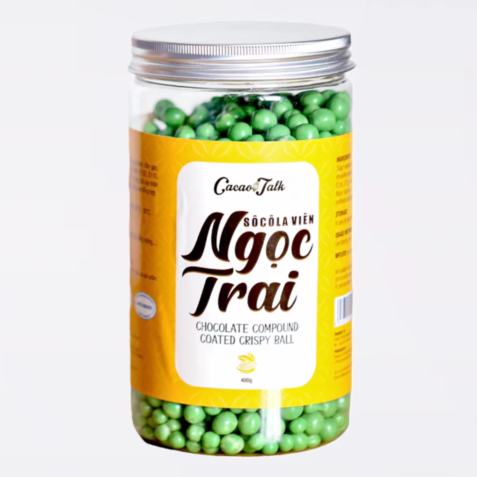 ลูกบอลกรอบเคลือบช็อคโกแลตสีเขียวฮาลาลผลิตจากโรงงาน