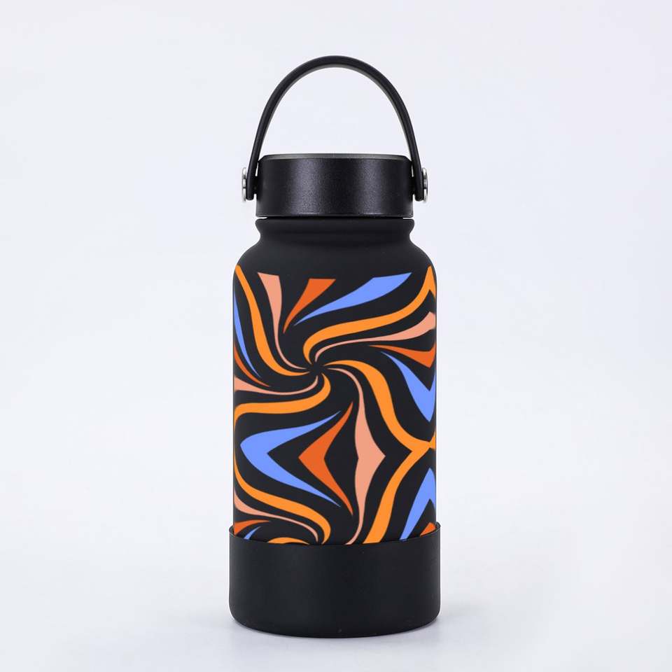 ขวดน้ำเก็บความร้อนสูญญากาศแบบปากกว้างทำจากสแตนเลสขวดน้ำแนวสปอร์ตพร้อมปลอกซิลิโคนกันพลิก