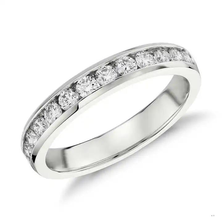 แหวนเพชรโมอิสซาไนต์ 2 กะรัตสั่งทำพิเศษจากโรงงาน ขนาด 3 มม. ทองเหลืองและทองคำขาว สำหรับงานแต่งงาน งานครบรอบ หรืองานเลี้ยง ประดับด้วยพลอยแท้