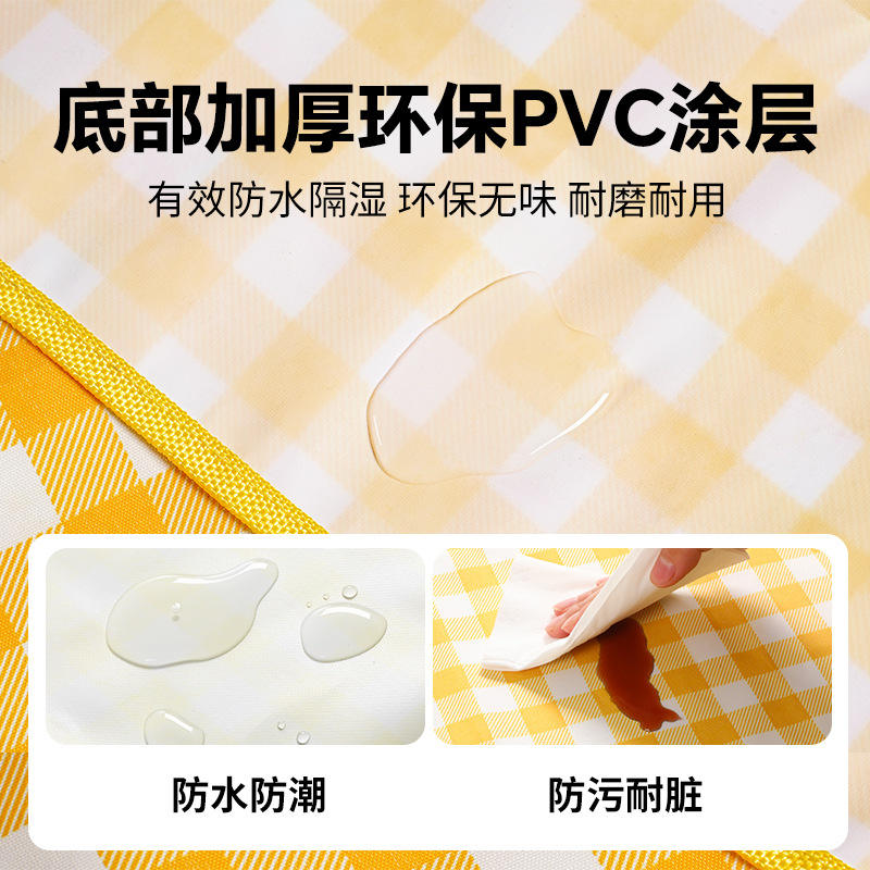 เสื่อปิกนิกผ้าอ๊อกซ์ฟอร์ด 600D แบบสั่งทำจากโรงงาน รูปทรงสี่เหลี่ยมผืนผ้า กันความชื้น พับเก็บได้ พกพาสะดวก ลายตารางสีเหลือง สำหรับตั้งแคมป์กลางแจ้ง