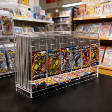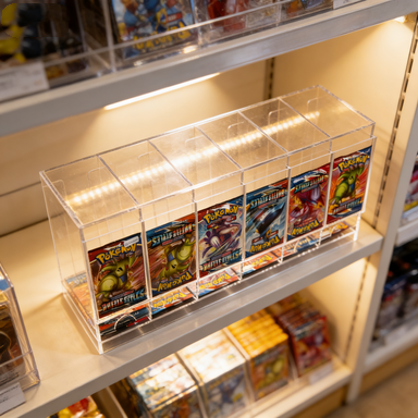 ชั้นวางอะคริลิคใสแบบกำหนดเองจากโรงงาน 6 ช่อง สำหรับใส่ซองการ์ดโปเกมอนแบบหรูหรา