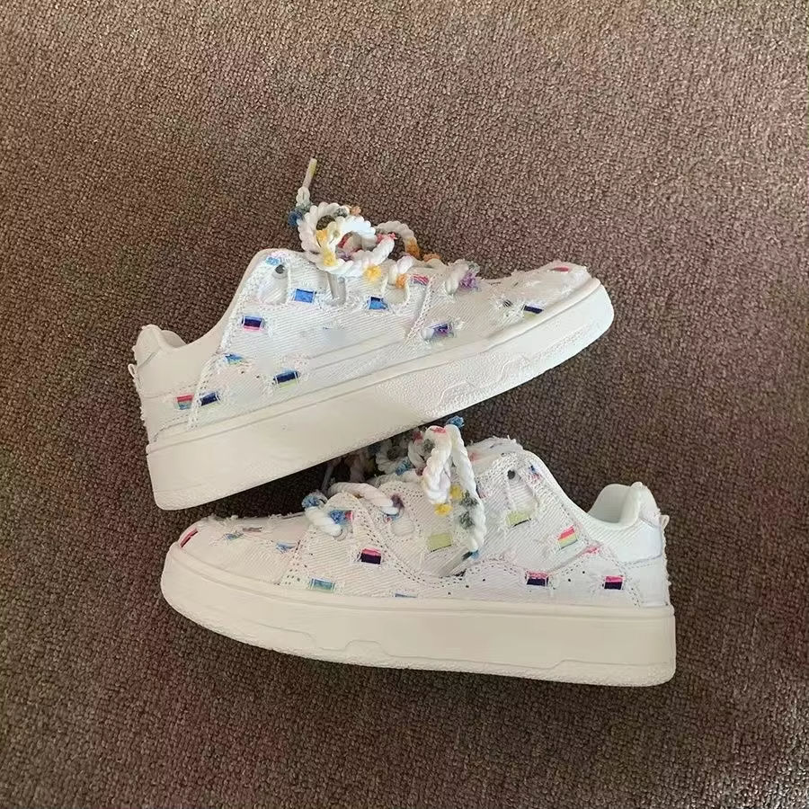 รองเท้าเดินพื้นด้านนอกทำจากผ้าใบน้ำหนักเบาลายจุดสีสันสดใสสำหรับผู้หญิงรองเท้ากีฬา