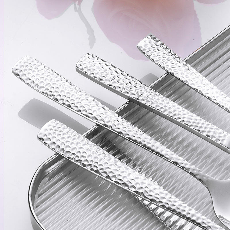 ชุดช้อนส้อมสเต็กสแตนเลสลายตอกแบบกำหนดเองจากโรงงาน ปลอดภัยสำหรับเครื่องล้างจาน เหมาะสำหรับงานจัดเลี้ยง