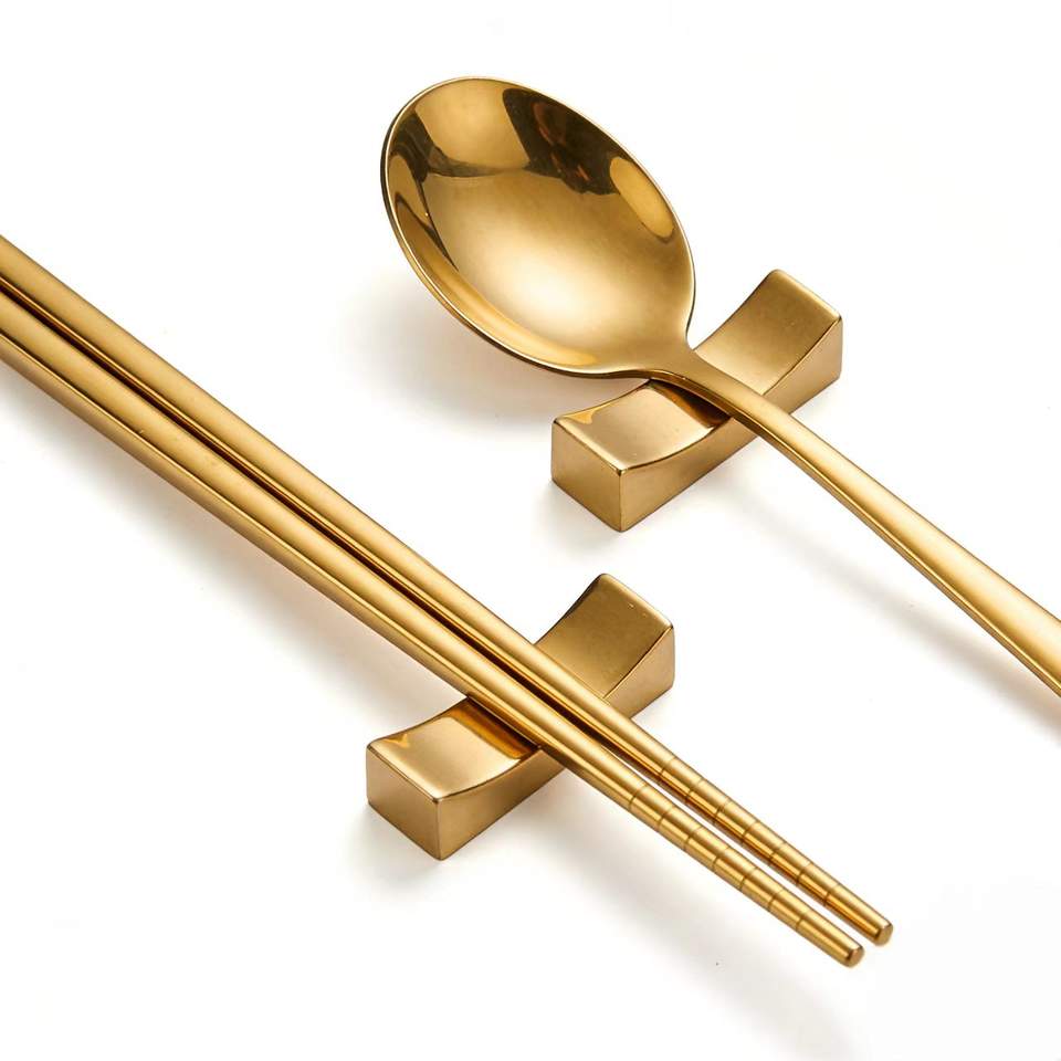 บริการผลิตตามสั่งจากโรงงาน ชุดช้อนสแตนเลสสตีลสีโรสโกลด์ด้าน สำหรับใช้ร่วมกันในงานจัดเลี้ยงหรือร้านอาหาร ดีไซน์หรูหรา