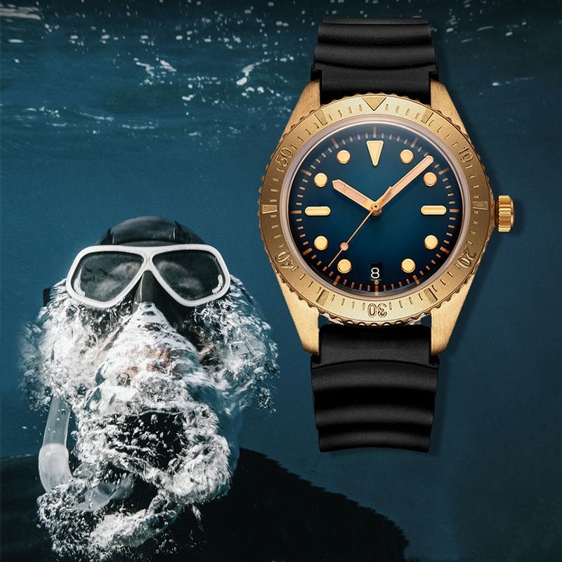 นาฬิกาผู้ชายทำจากทองสัมฤทธิ์กันน้ำได้, ผลิตตามแบบได้จากโรงงานสามารถปรับแต่งได้5ATM กันน้ำได้ C3ส่องสว่างสุดหรู