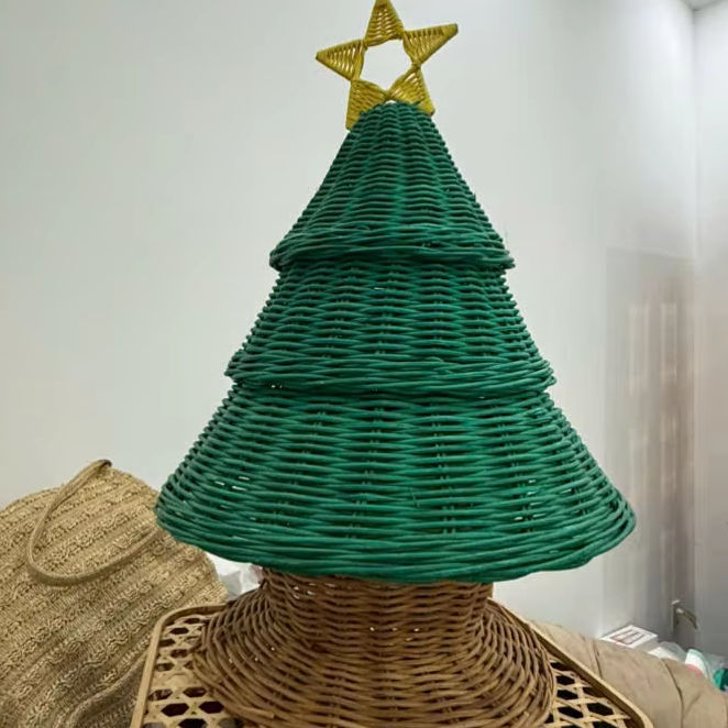 โคมไฟตั้งโต๊ะรูปต้นคริสต์มาสหวายตกแต่งงานเทศกาล ขนาด 35x60 ซม. สำหรับงานปาร์ตี้ ของตกแต่งงานเทศกาล ของขวัญงานฝีมือหวาย