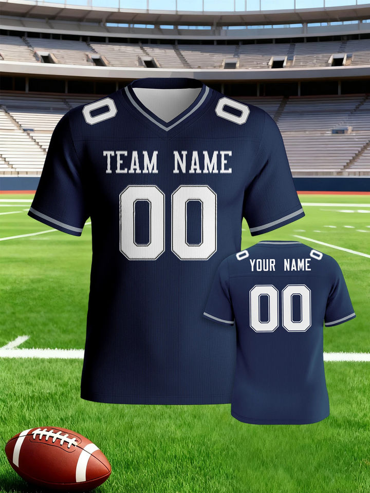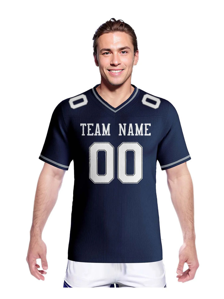 ชุดยูนิฟอร์มเสื้อเจอร์ซีย์และกางเกงฟุตบอลอเมริกันแขนสั้นแบบเย็บติดกัน ดีไซน์โรงงาน ผลิตจากโพลีเอสเตอร์ 100% สำหรับผู้ชาย