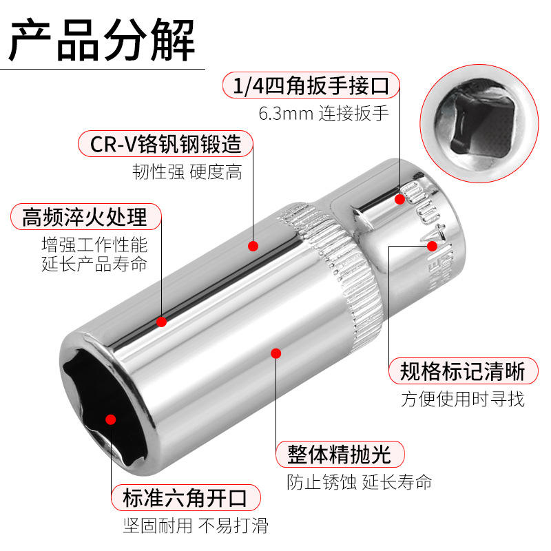 ประแจหกเหลี่ยมขนาด 1/4 นิ้ว (6.3 มม.) ผลิตจากโรงงานโดยตรง แบบปลอกชุบเกรดอุตสาหกรรม ผลิตด้วยวิธีการตีเย็น