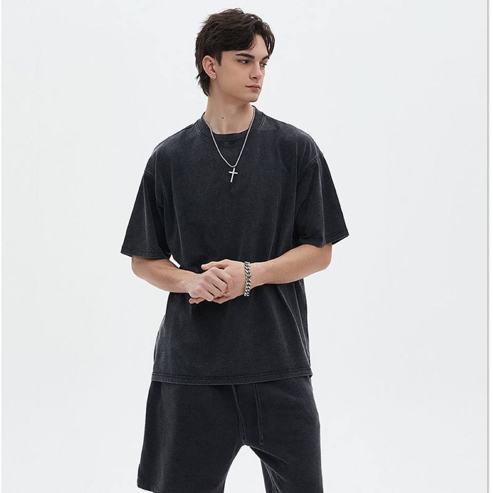 เสื้อยืดผู้ชายผ้าคอตตอนไซส์ใหญ่พิเศษผ้าแห้งเร็วสไตล์วินเทจผ้าถักแบบหนาสีดำถัก100% ตรงจากโรงงาน