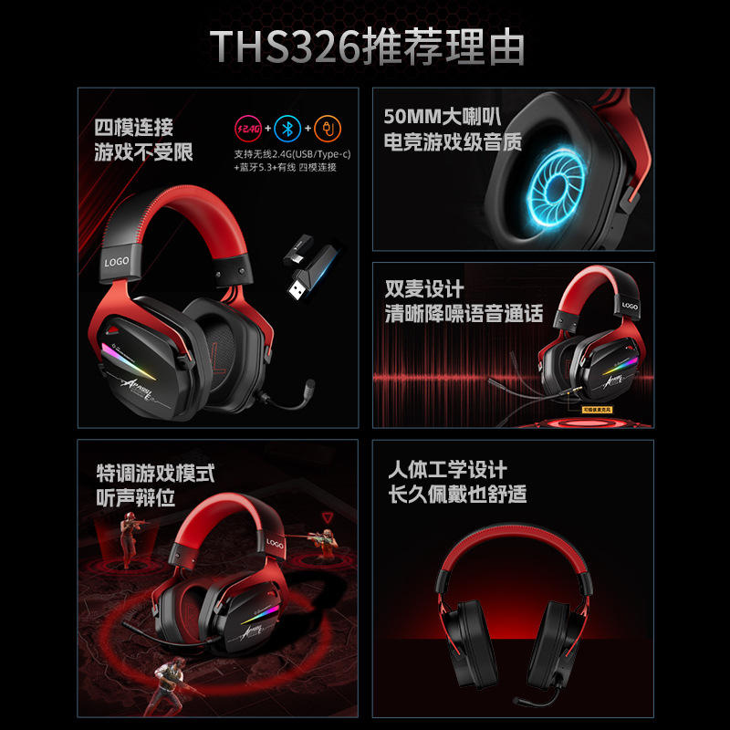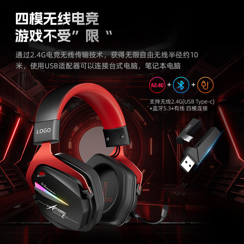 ชุดหูฟังไร้สายสี่โหมดแบบสวมหูและครอบหูขนาด2.4กรัมหูฟังบลูทูธสำหรับเล่นเกมแบบมีสายไมโครโฟน