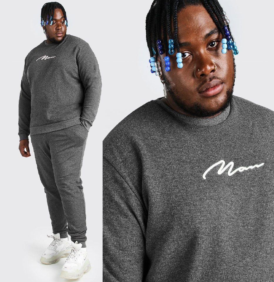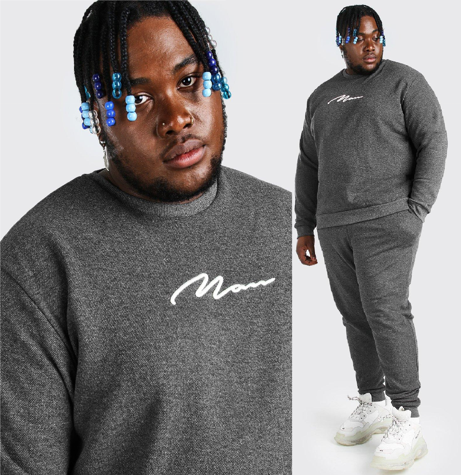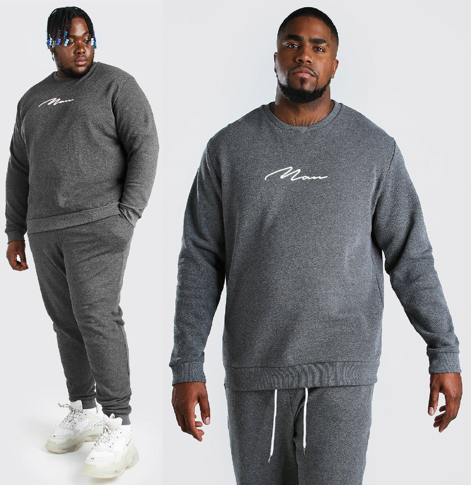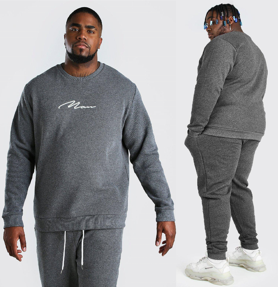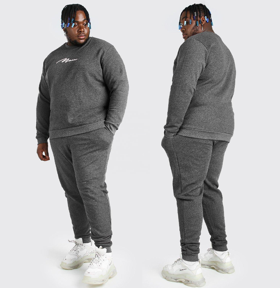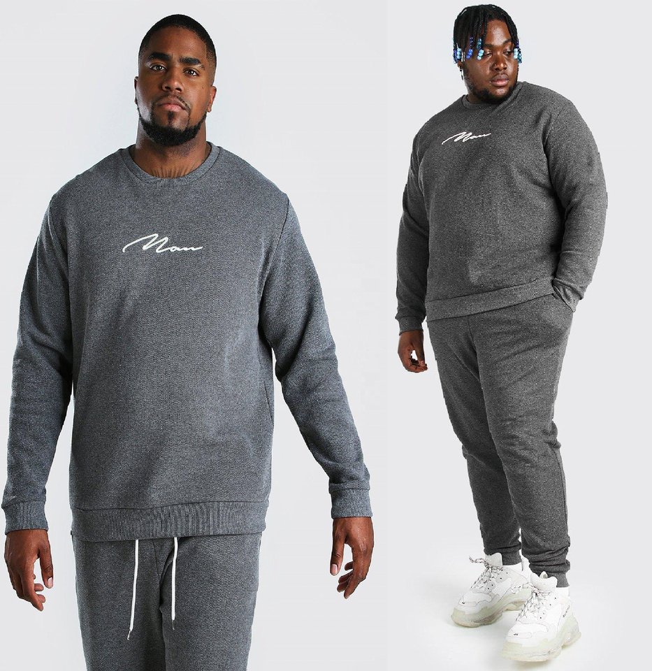 ชุดวอร์มคอกลมสำหรับผู้ชาย,ชุดวอร์มสำหรับนักวิ่งเสื้อวอร์มแบบสวมศีรษะคอกลมแขนยาว2ชิ้นไซส์ใหญ่พิเศษมีหลายสี