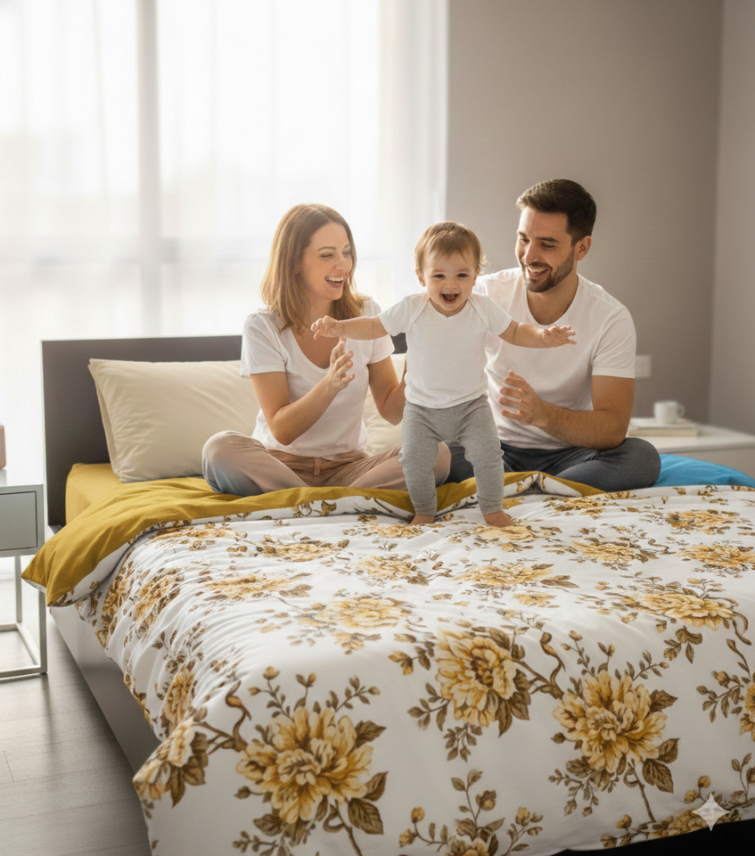ผ้าปูที่นอนแบบรัดมุม + ผ้าปูที่นอนแบบเรียบ