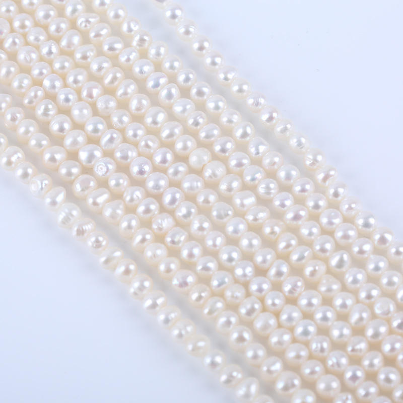 ไข่มุกน้ำจืดสีชมพูธรรมชาติ ขนาด 5-6 มม. รูปไข่ แบบเจาะรู วัสดุทำเครื่องประดับ DIY ขายตรงจากโรงงาน