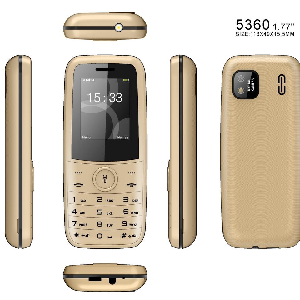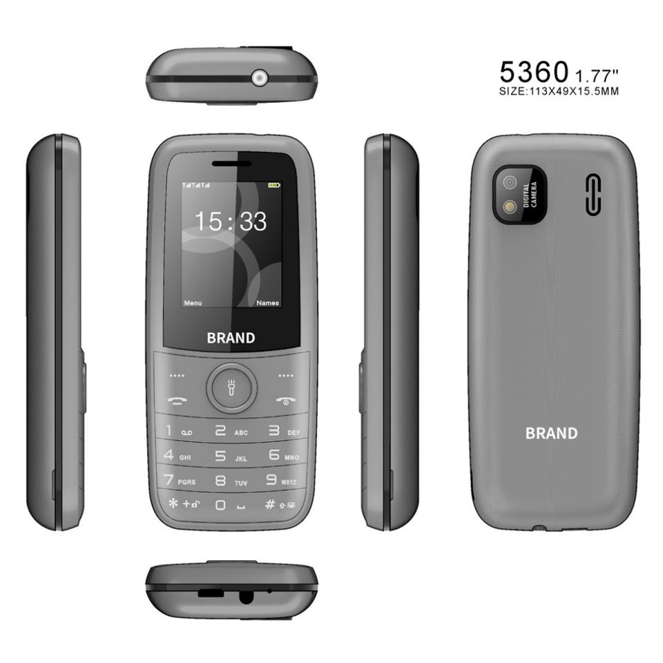 โทรศัพท์มือถือทนทานขนาดเล็ก รุ่น 5360 OEM ODM หน้าจอ 1.77 นิ้ว แบตเตอรี่ขนาดใหญ่ รองรับเครือข่าย 2G ราคาถูกจากโรงงานโดยตรง