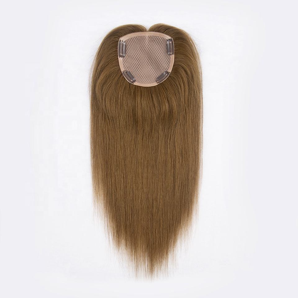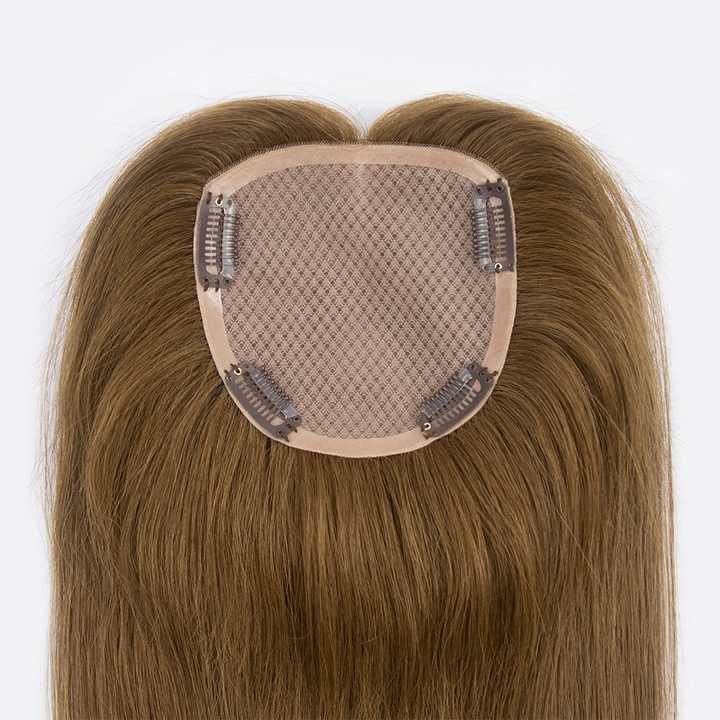 ท็อปเปอร์ผมแบบตาข่ายเพชร 5x5 จากโรงงานโดยตรง พร้อมฐานผ้าไหม ผมแท้ 100% ติดคลิป 4 ตัว สีน้ำตาลอ่อน มีสินค้าในสต็อก คุณภาพสูงสุด