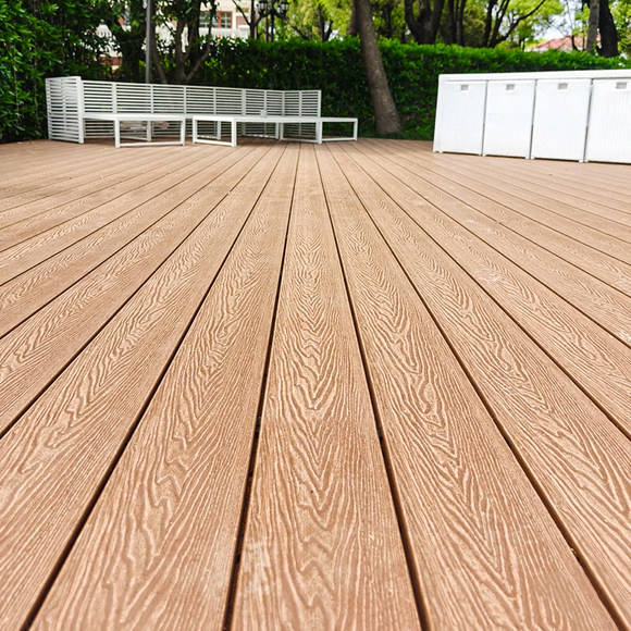 พื้นไม้พลาสติกคอมโพสิตกันน้ำสำหรับระเบียงกลางแจ้ง WPC กันยูวี