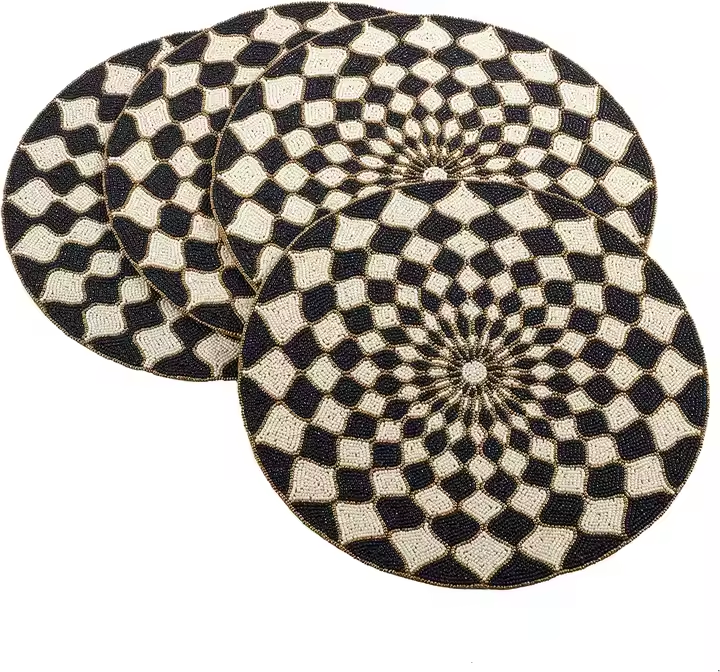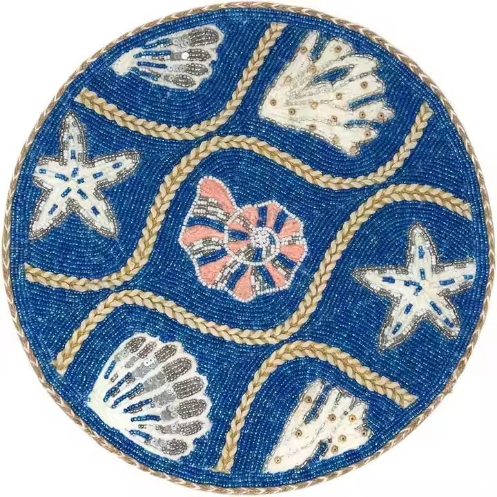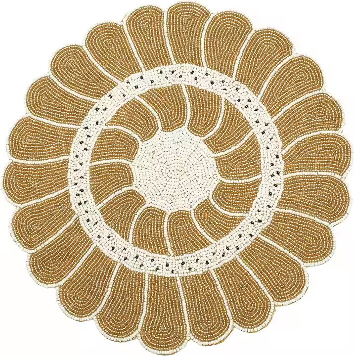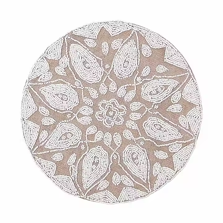แผ่นรองจานทรงกลมลูกปัดสำหรับโต๊ะอาหารเสื่อแฟนซีแผ่นรองจานปักลูกปัดทำด้วยมือสำหรับงานแต่งงาน