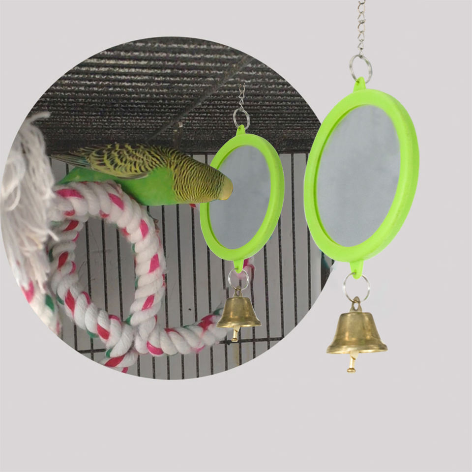 กระจกนกของเล่นแบบอินเตอร์แอคทีฟพร้อมกระดิ่งของเล่นกระจกรูปนกทนทาน