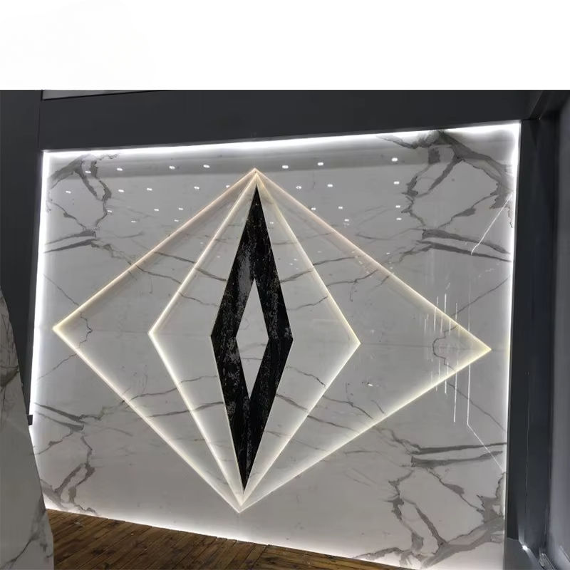 กระเบื้องหินอ่อนลาย Calacatta Gold ดีไซน์ทันสมัยจากโรงงานโดยตรง ผิวขัดเงา สำหรับโครงการโรงแรม พร้อมลายกราฟิก