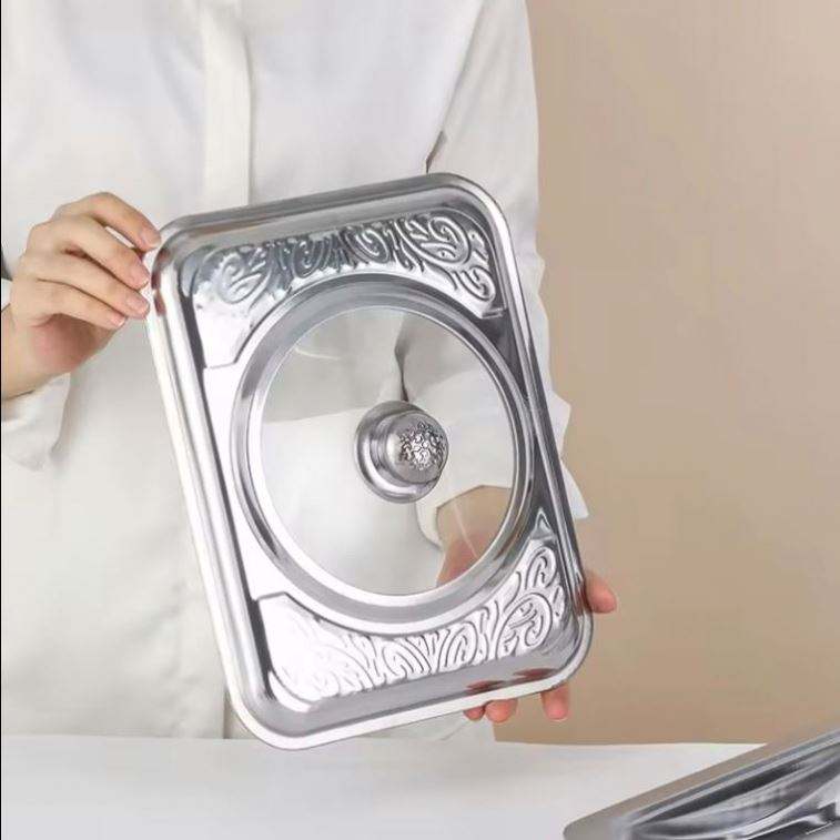 ถาดอุ่นอาหารบุฟเฟ่ต์สแตนเลสแบบประหยัดพลังงานสำหรับโรงแรมเชิงพาณิชย์จากโรงงานโดยตรง พร้อมฝาปิด 50 ชิ้น สำหรับงานปาร์ตี้ สลักโลโก้ตามสั่ง