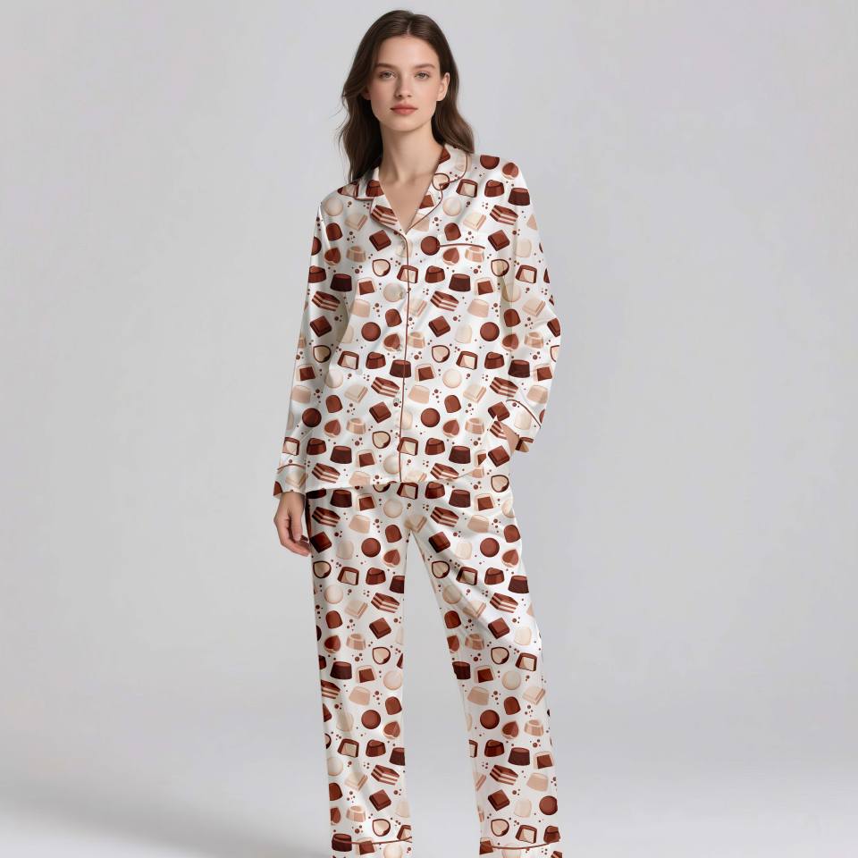 ชุดเสื้อกางเกงผ้าซาตินแขนยาวของผู้หญิงชุดผ้าซาตินขายาว100% ออกแบบได้ตามต้องการ