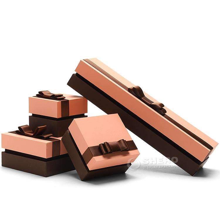 กล่องบรรจุภัณฑ์เครื่องประดับกระดาษสีชมพูพร้อมฝาปิดกล่องของขวัญเครื่องประดับ