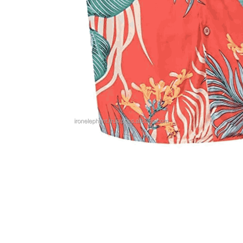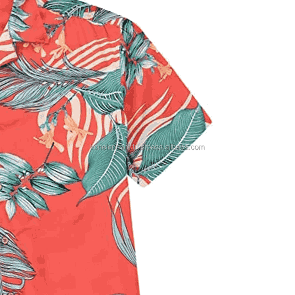 เสื้อฮาวายผ้าฝ้าย100% สำหรับผู้ชายเสื้อชายหาดระบายอากาศได้ดีดีไซน์ใหม่เส้นด้ายนิ่มย้อมแบบกำหนดเองได้